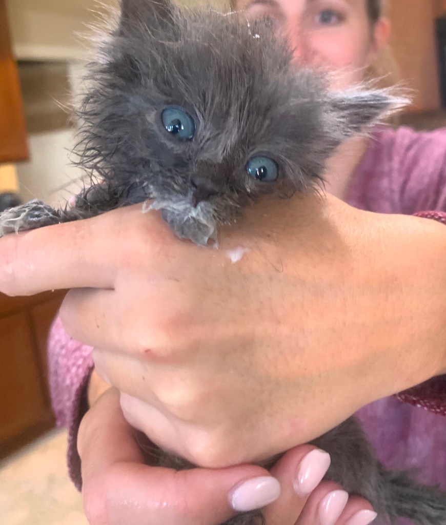 On September 27, 2020, we took three, five-week-old kittens home. They were all between 6-12 ounces, Frank being the smallest. For reference, they should be well over 16 ounces (1 pound) at this age. In the first 24 hours, we cared for them around the clock, trying every tactic we knew to keep them alive. On September 28, I lost my first foster kitten. The one little girl, who was about 8 ounces in size, passed away in my hands. Whatever her life before me entailed, it was bad enough for her to leave this world. When kittens come from outside, especially late in the kitten season and colder weather, the odds of survival are a lot lower. I still think about everything I could have done differently, and she may have survived.